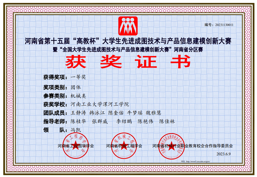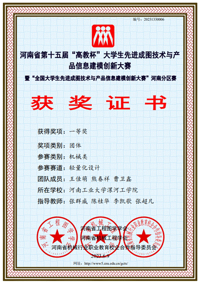 今年河南省省赛参赛人数多达1600余人,59支队伍,其中机械类1001人,参赛人数创历史新高。suncitygroup太阳成集团通过校赛多次选拔、集中培训,最终选定王静涛、陈奎佑等11名同学代表公司参赛。在团队老师的悉心指导和同学们的不懈努力下,最终获得成图赛道一等奖3项、二等奖2项、三等奖2项、轻量化设计赛道一等奖的优异成绩。