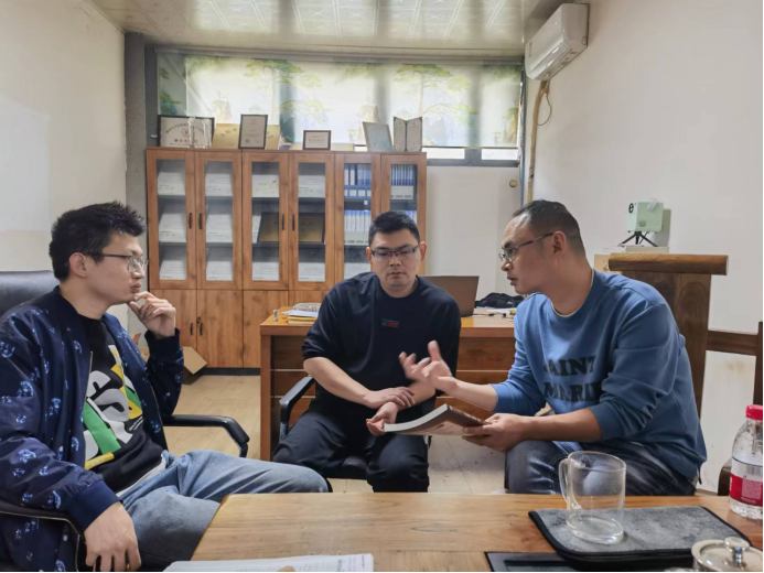 10月6日下午,suncitygroup太阳成集团“高职院校智能制造专业群基于“产学研用”融合理念的双元制教材开发研究”项目小组一行5人走进漯河市汇博自动化机械设备有限公司,就《PLC应用技术(西门子S7-1200)》教材建设再次进行深入研讨。公司执行董事兼总经理苏雨、监事牛淼淼参加。