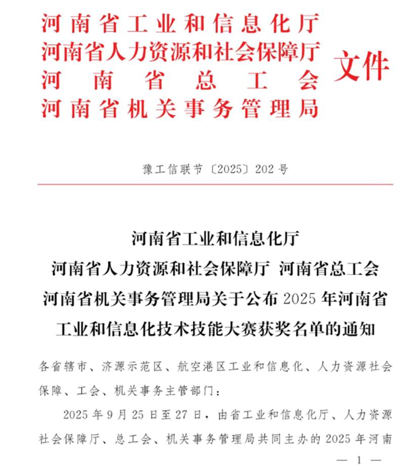近日,2025年河南省工业和信息化技术技能大赛成绩公布,公司2024级智能控制技术专业员工张家祥凭借扎实的专业知识、熟练的动手操作和稳定的心理素质,在众多选手中脱颖而出,荣获电气设备安装工赛项员工组二等奖。
