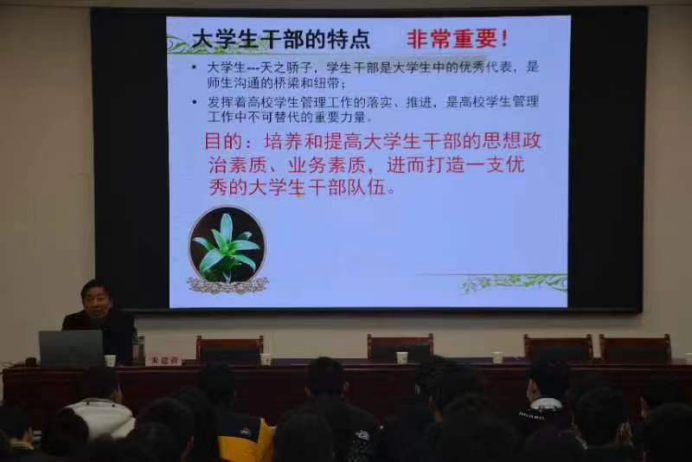 朱建营主任对员工干部队伍建设进行专题培训,他从员工干部应具备的基本礼仪、基本素质、基本意识、基本能力、应处理好的几个关系五个方面为同学进行了培训,提升了员工干部综合素养。