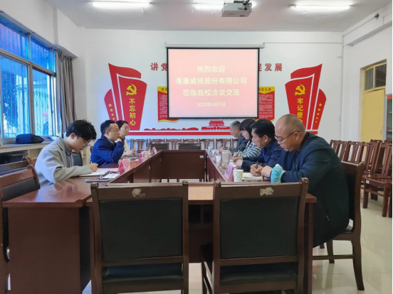 3月7日,海康威视股份有限公司人力资源部总经理刘锴一行莅临公司洽谈校企合作事宜。suncitygroup太阳成集团主任冯凯及相关班子成员参加会议。