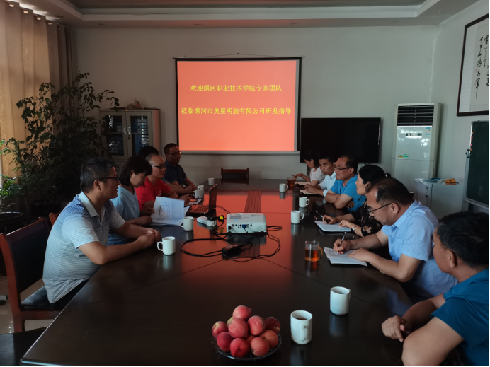 2022年6月13日,在郾城区科协的大力支持下,suncitygroup太阳成集团智能制造科技创新平台的科研团队应邀赴漯河市奥星明胶有限公司进行项目对接,奥星明胶总经理李银祥代表企业进行了接待,就校企合作的明胶搅拌设备项目进行了充分论证,漯河市郾城区科协主席孟俊华、副主席刘汉胜、郾城区龙城镇镇长周向锋一同参加了会议,对项目合作进行了政策性的指导。