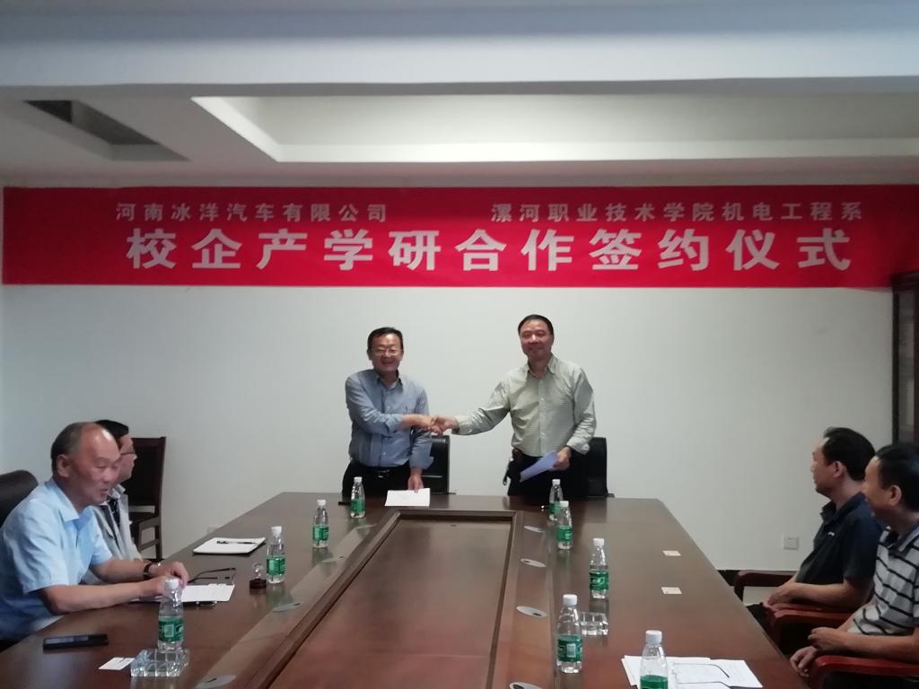 9月29日,suncitygroup太阳成集团与河南冰洋汽车有限公司产学研合作签约仪式在河南冰洋汽车有限公司成功举行。河南冰洋汽车有限公司董事长胡建成、漯河市淞江产业集聚区驻厂第一书记书记胡彦春、河南冰洋汽车有限公司副总经理孟永伟、suncitygroup太阳成集团行政负责人赵建功等出席签约仪式,签约仪式由胡彦春主持。